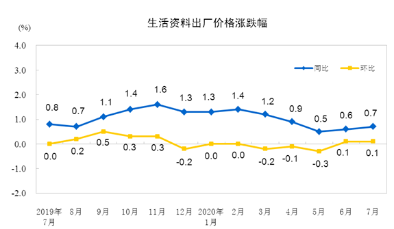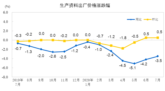2020年7月份,全國(guó)工業(yè)生產(chǎn)者出廠價(jià)格同比下降2.4%,環(huán)比上漲0.4%;工業(yè)生產(chǎn)者購(gòu)進(jìn)價(jià)格同比下降3.3%,環(huán)比上漲0.9%。1―7月平均,工業(yè)生產(chǎn)者出廠價(jià)格比去年同期下降2.0%,工業(yè)生產(chǎn)者購(gòu)進(jìn)價(jià)格下降2.7%。