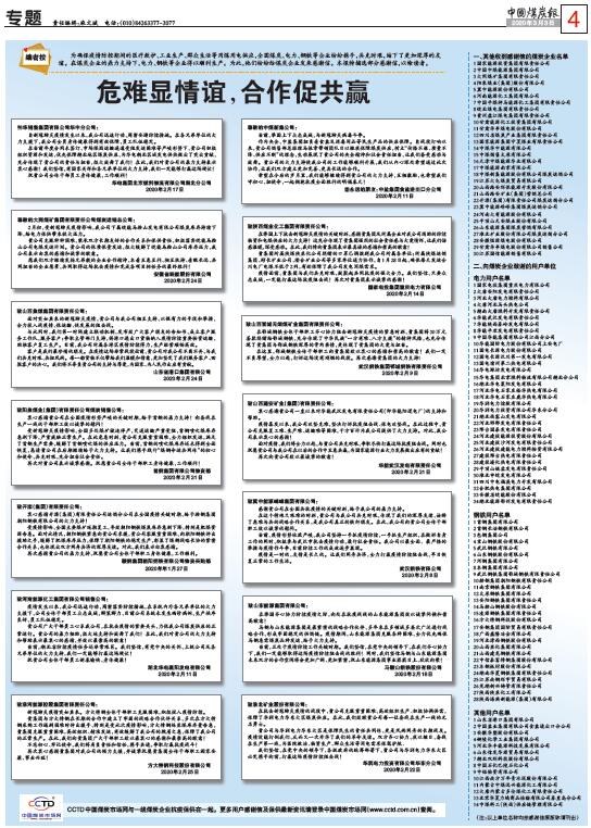 危難顯情意 合作促共贏——《中國煤炭報》刊發(fā)14家用戶感謝信